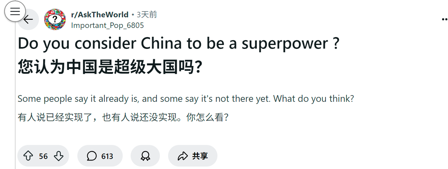 Do you consider China to be a superpower ? 您认为中国是超级大国吗?
