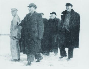 1952年10月27日下午,参观历城县黄河泺口大坝,称赞大坝修得好。