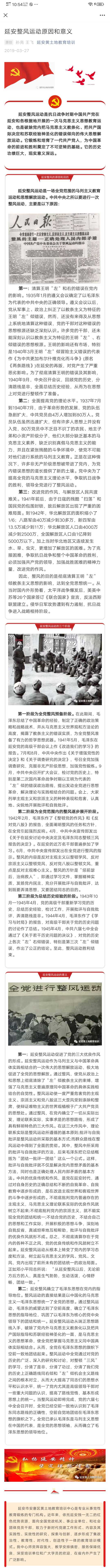 延安整风运动是抗日战争时期中国共产党在延安和各根据地开展的一次马克思主义思想教育运动,也是破除党内把马克思主义教条化、把共产国际决定和苏联经验神圣化的错误倾向的伟大思想解放运动。它锻炼和培育了一代共产党人,为中国革命的前进和胜利奠定了不可逆转的基础。它的历史功绩巨大,现实意义深远