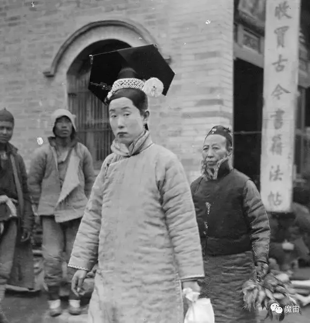 70岁朝贡者和乞讨的妇女。拍摄地点:北京妙峰山,拍摄时间:1924-1927年。