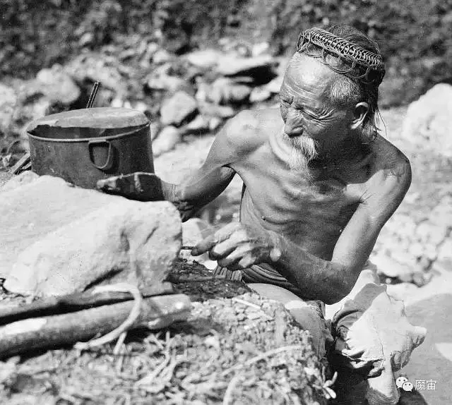 做米饭的老人。拍摄地点:四川安县,拍摄时间:1917-1919年。