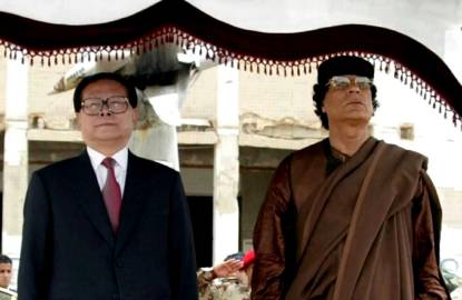 欢迎宴会上卡扎菲突然站起身,清清嗓子宣布:“江主席,为感谢你的来访,我决定向你颁发‘九·一’革命勋章,它象征利比亚最高荣誉!”