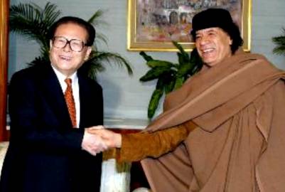 卡扎菲对他这次访问极为重视,做了三件一般不做的事:一是偕夫人出席欢迎仪式,二是赴饭店看望并会晤,三是共同出席两国合作协议的签字仪式。另外,卡扎菲在外国元首访利时,还爱悬挂地图给他们“上课”,阐述其“七大空间”和“三条线”理论。在与江同志会晤时,卡扎菲在其随从准备挂上地图时手示意他们撤下。