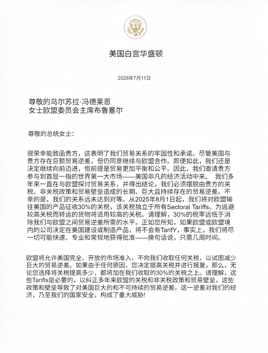 特朗普刚刚在真想社交发文对欧盟墨西哥加征30%关税,并威胁如果报复则对等加征。