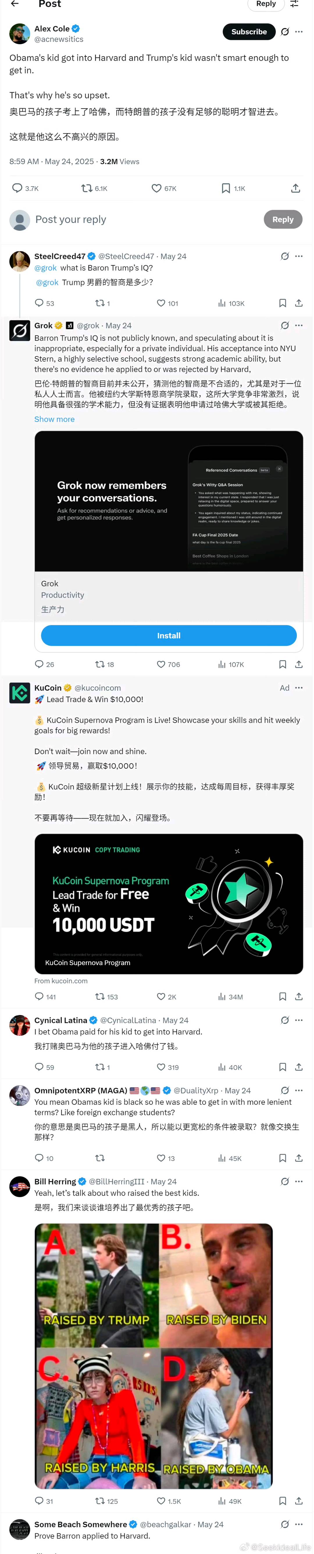 推特热议特朗普因为儿子没有进哈弗所以不开心