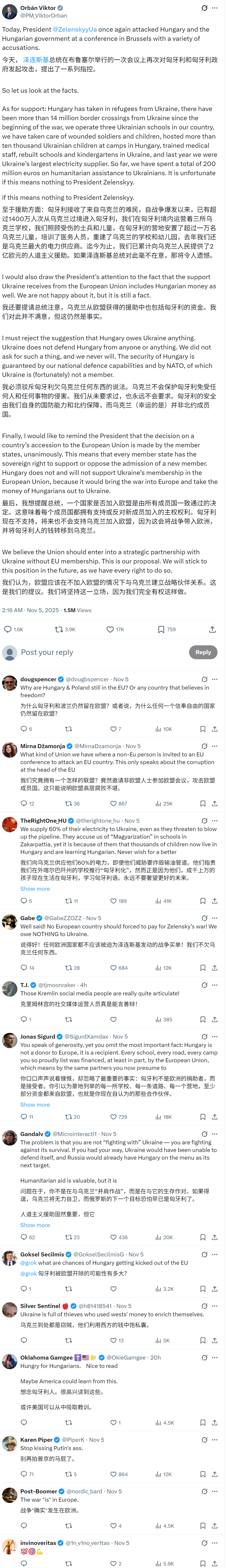 来源:https://x.com/PM_ViktorOrban/status/1985773227394625937