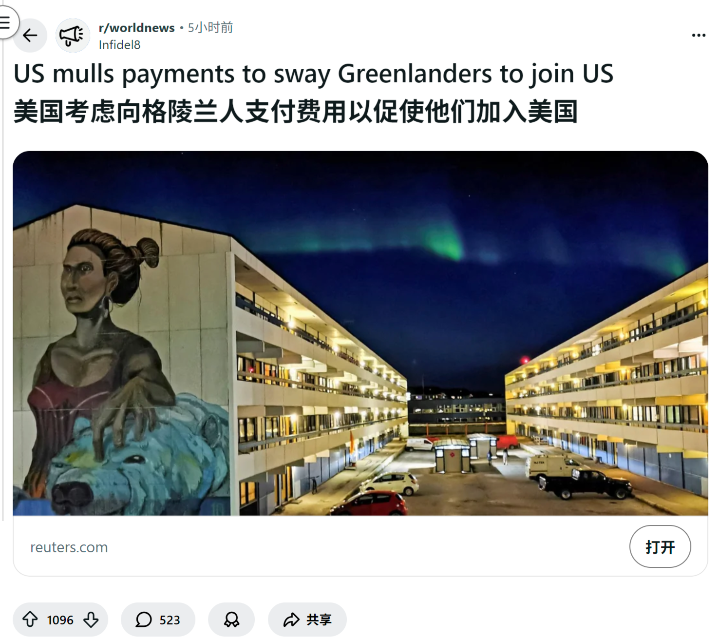 reddit热议 美国考虑向格陵兰每人支付十万美元以促使他们加入美国