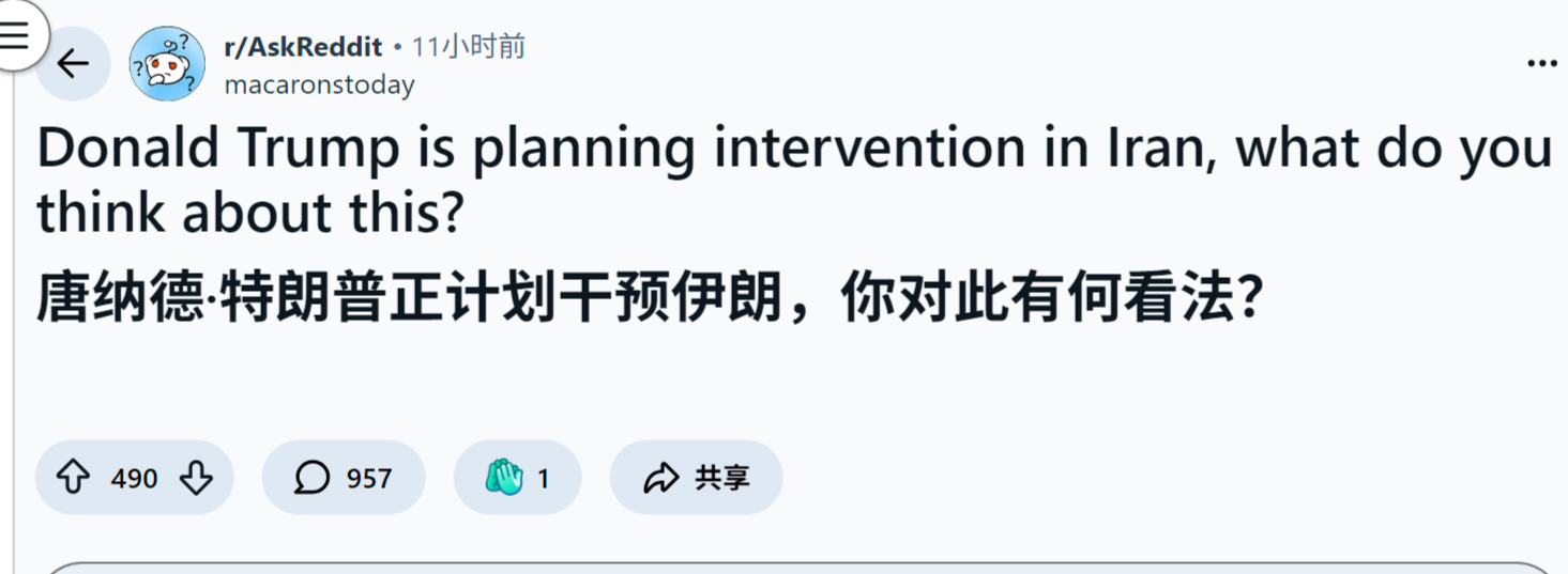 reddit热议 美国人如何看特朗普正计划干预伊朗