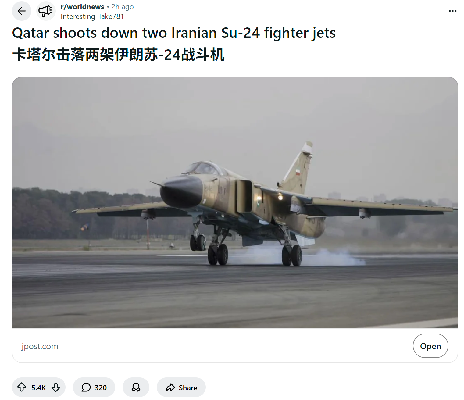 老外调侃科威特击落了美国3架战机,他们领先了。
