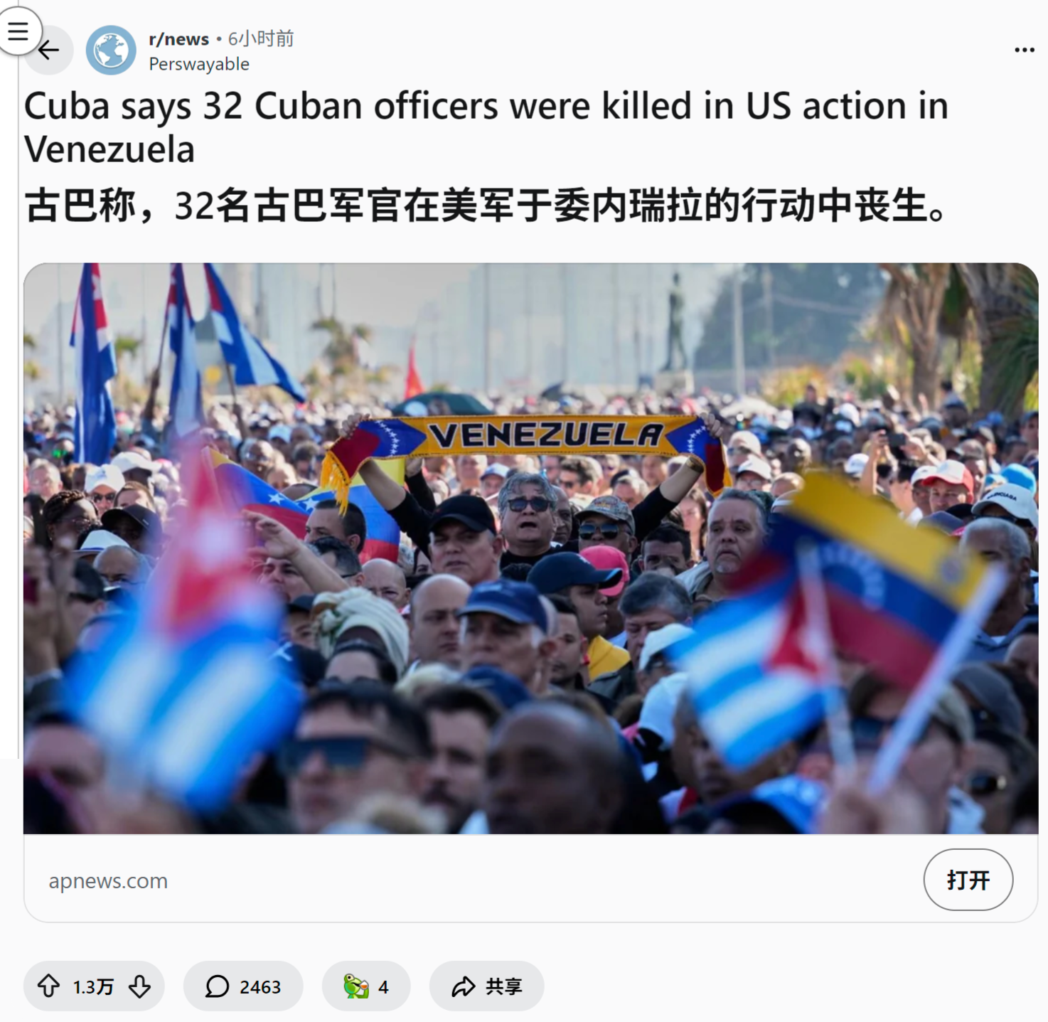reddit爆火 美国人怎么看古巴称,32名古巴军官在美军于委内瑞拉的行动中丧生
