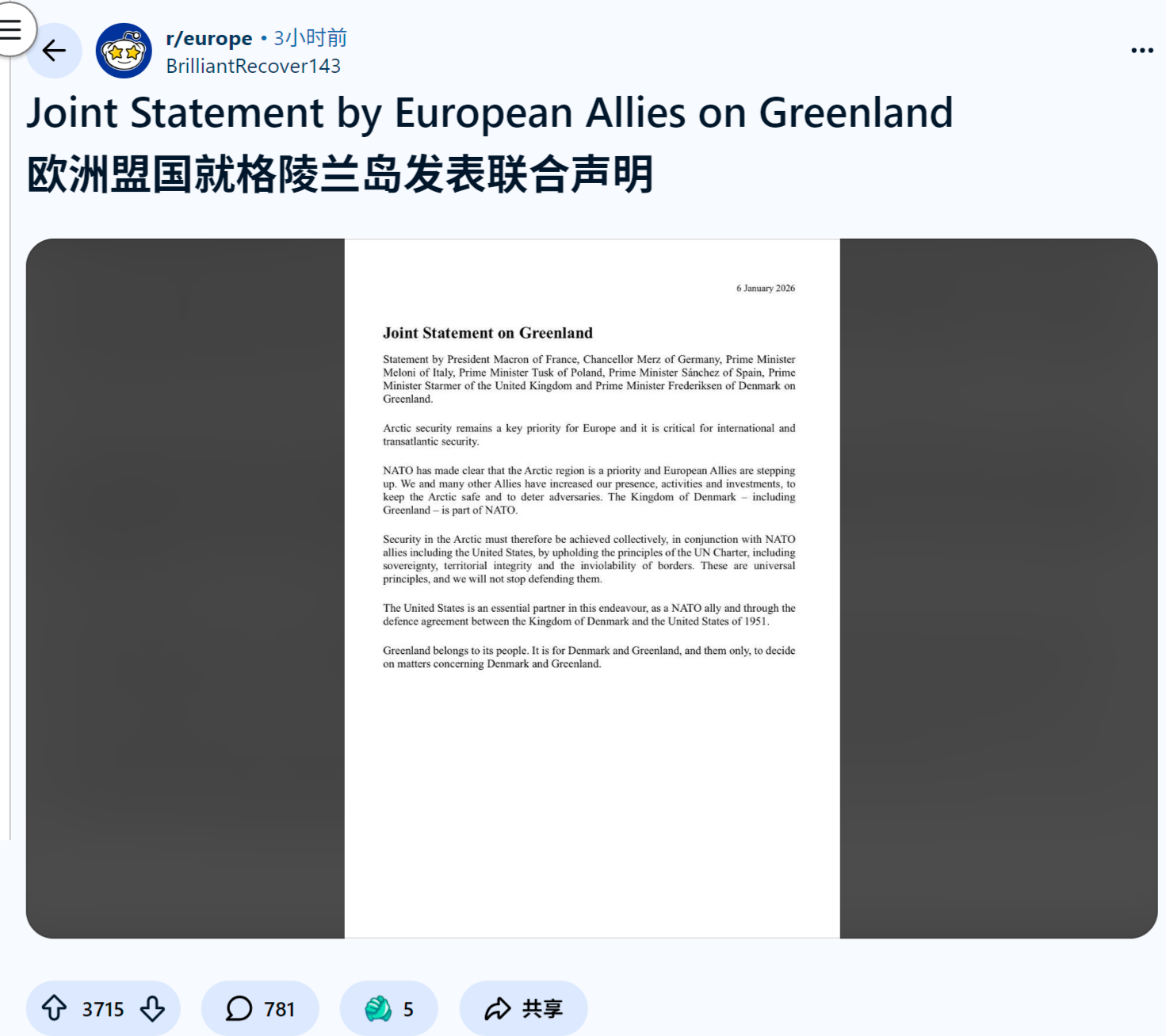 来源:https://www.reddit.com/r/europe/comments/1q5gd0w/joint_statement_by_european_allies_on_greenland/