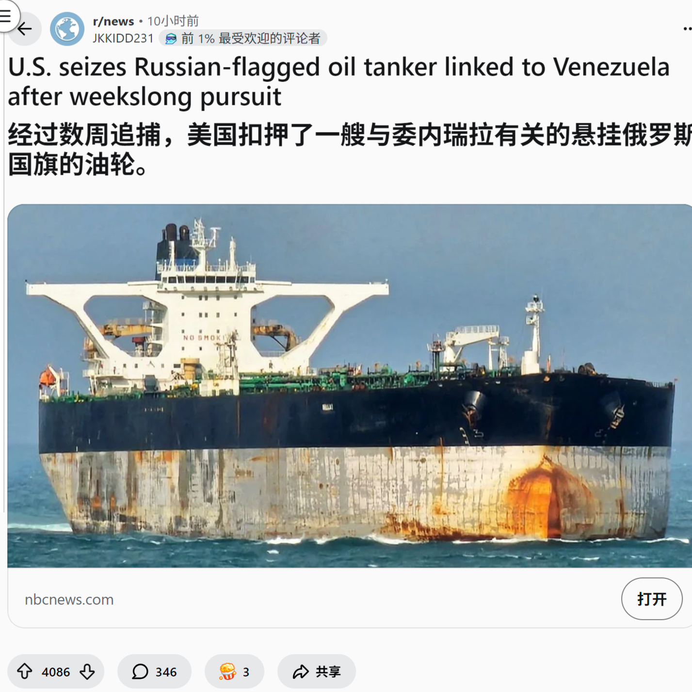- reddit爆火 美国人怎么看美国在委内瑞拉海岸附近扣押了一艘油轮
