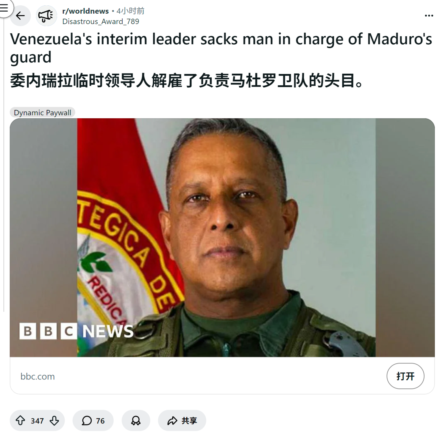 reddit热议 委内瑞拉临时领导人解雇了负责马杜罗卫队的头目。