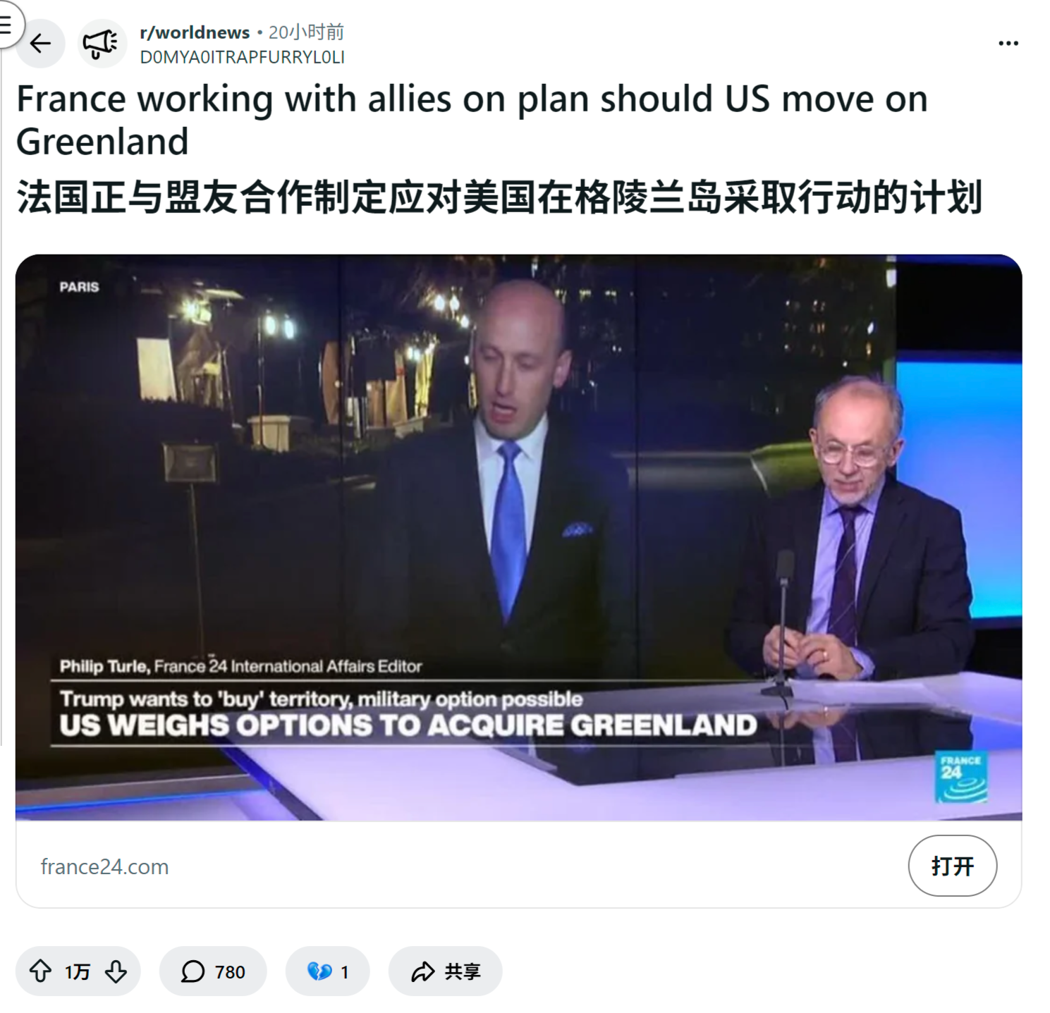 reddit热议 法国正与盟友合作制定应对美国在格陵兰岛采取行动的计划
