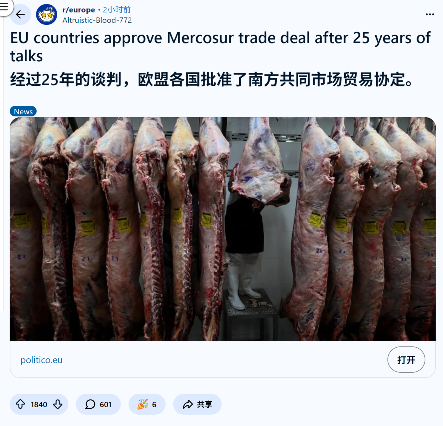 来源:https://www.reddit.com/r/europe/comments/1q85tst/eu_countries_approve_mercosur_trade_deal_after_25/