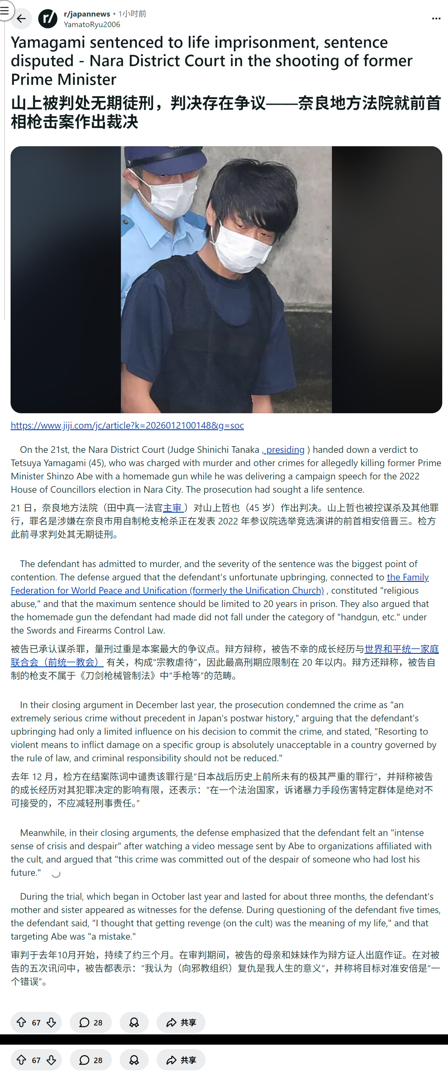 reddit日本人怎么看山上被判处无期徒刑
