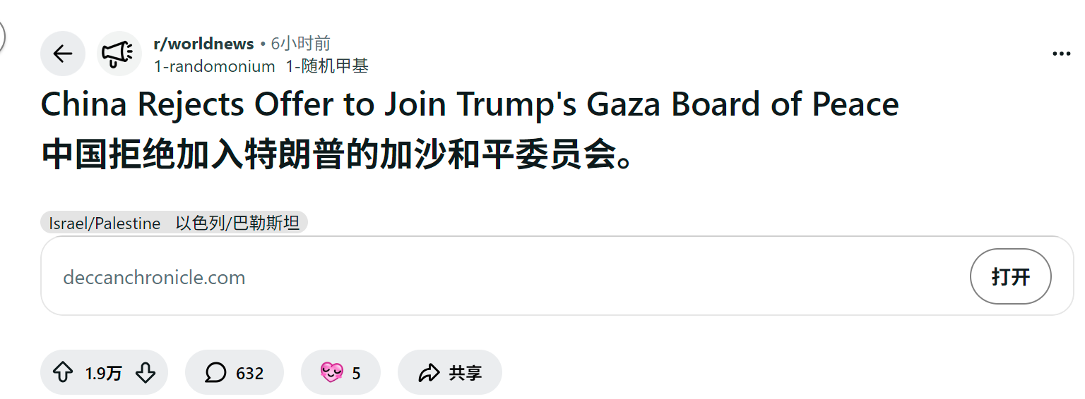 reddit热议 老外怎么看中国拒绝加入特朗普的加沙和平委员会