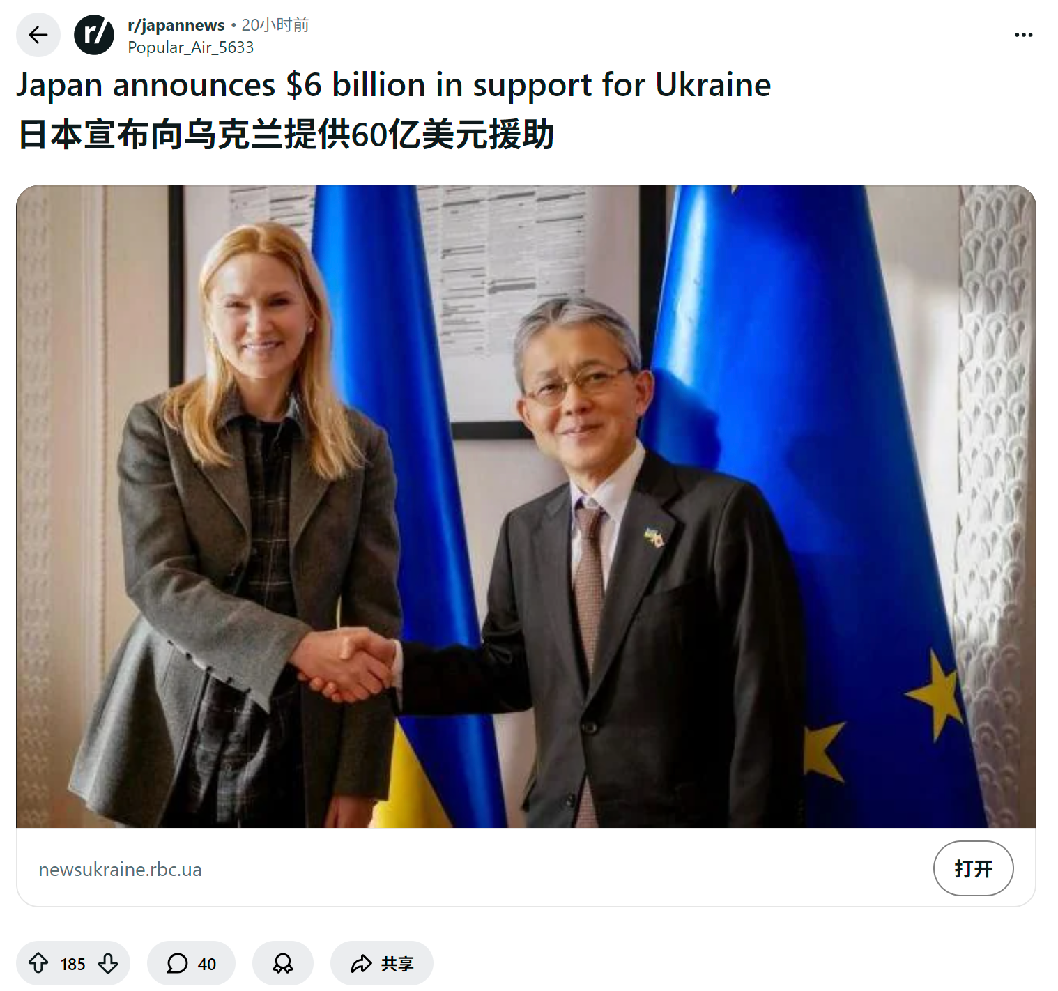 reddit帖子 日本人怎么看日本宣布向乌克兰提供60亿美元援助