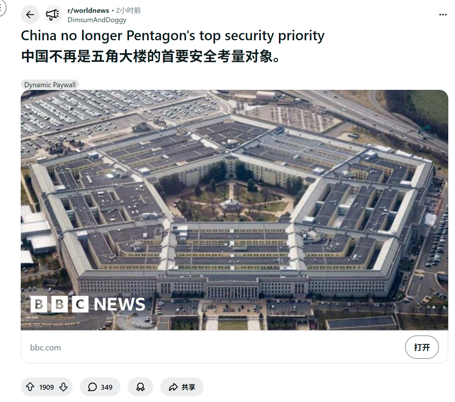 reddit爆火 老外怎么看中国不再是五角大楼的首要安全考量对象
