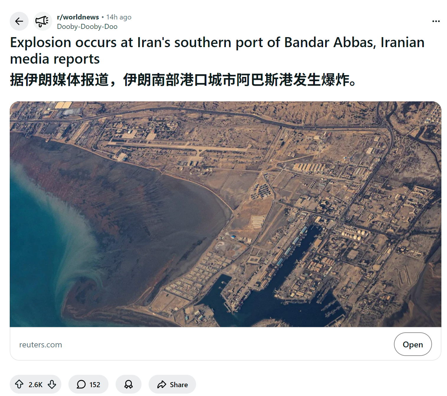 reddit爆火 美国人怎么看据伊朗媒体报道,伊朗南部港口城市阿巴斯港发生爆炸。