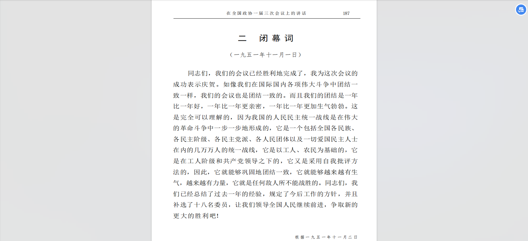 珍藏7:1951.11.1毛主席在政协一届三次会议上的讲话