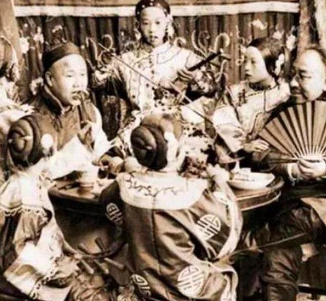 外国人拍摄的清朝老照片:有钱人吃饭。