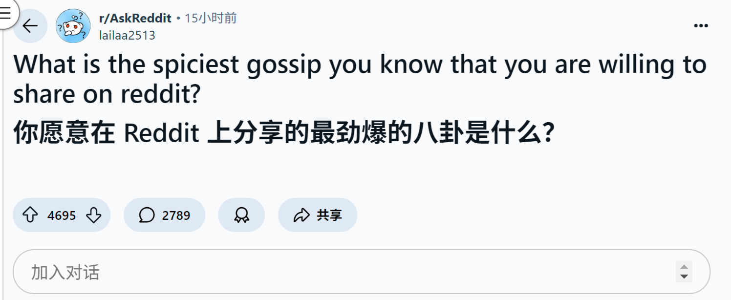 外网reddit热议 老外在Reddit 上分享的最劲爆的八卦