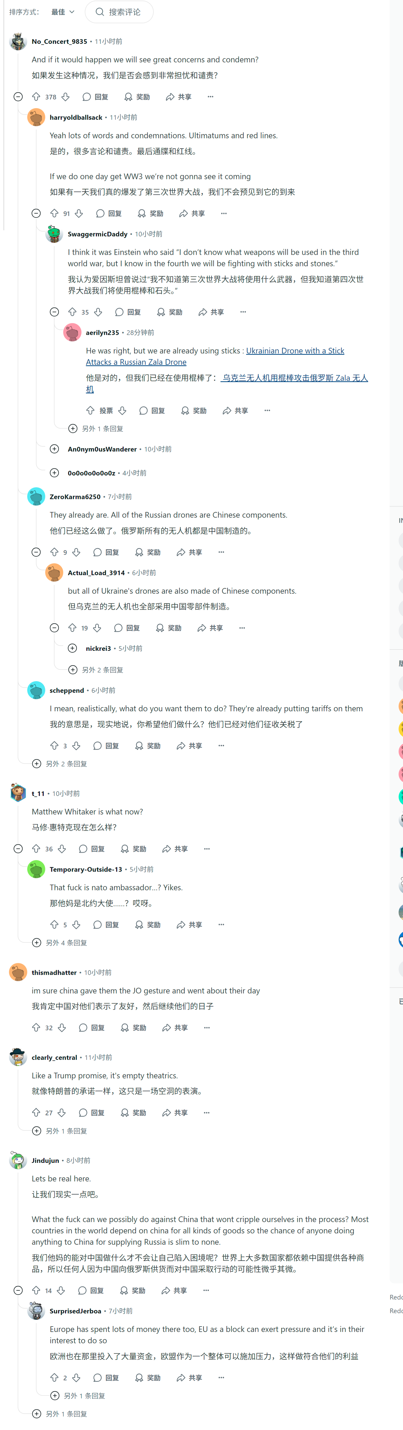 外网reddit热评 美国人怎么看美国北约大使警告中国不要“资助”俄罗斯在乌克兰的战争