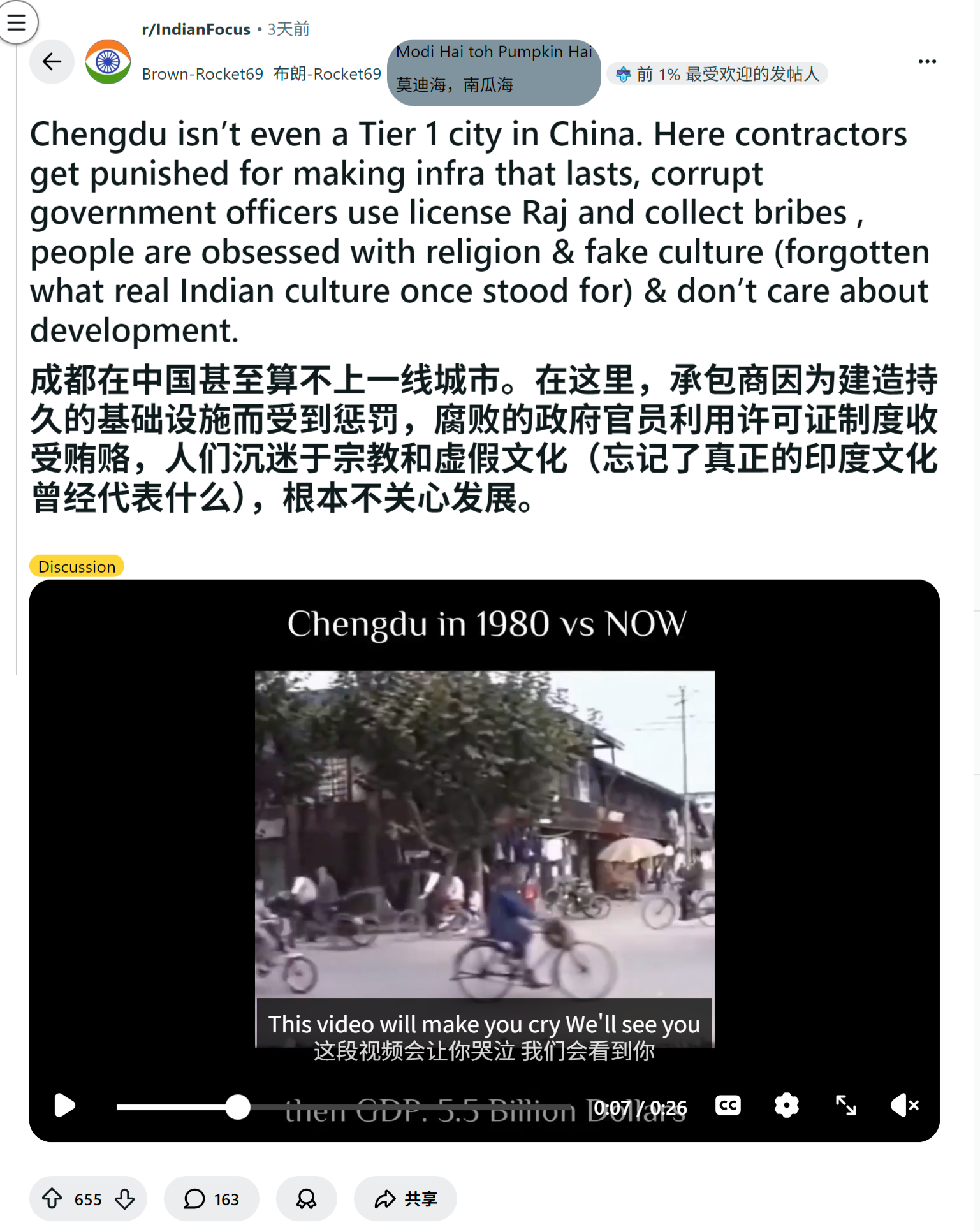 来源:https://www.reddit.com/r/IndianFocus/comments/1obaq1z/chengdu_isnt_even_a_tier_1_city_in_china_here/