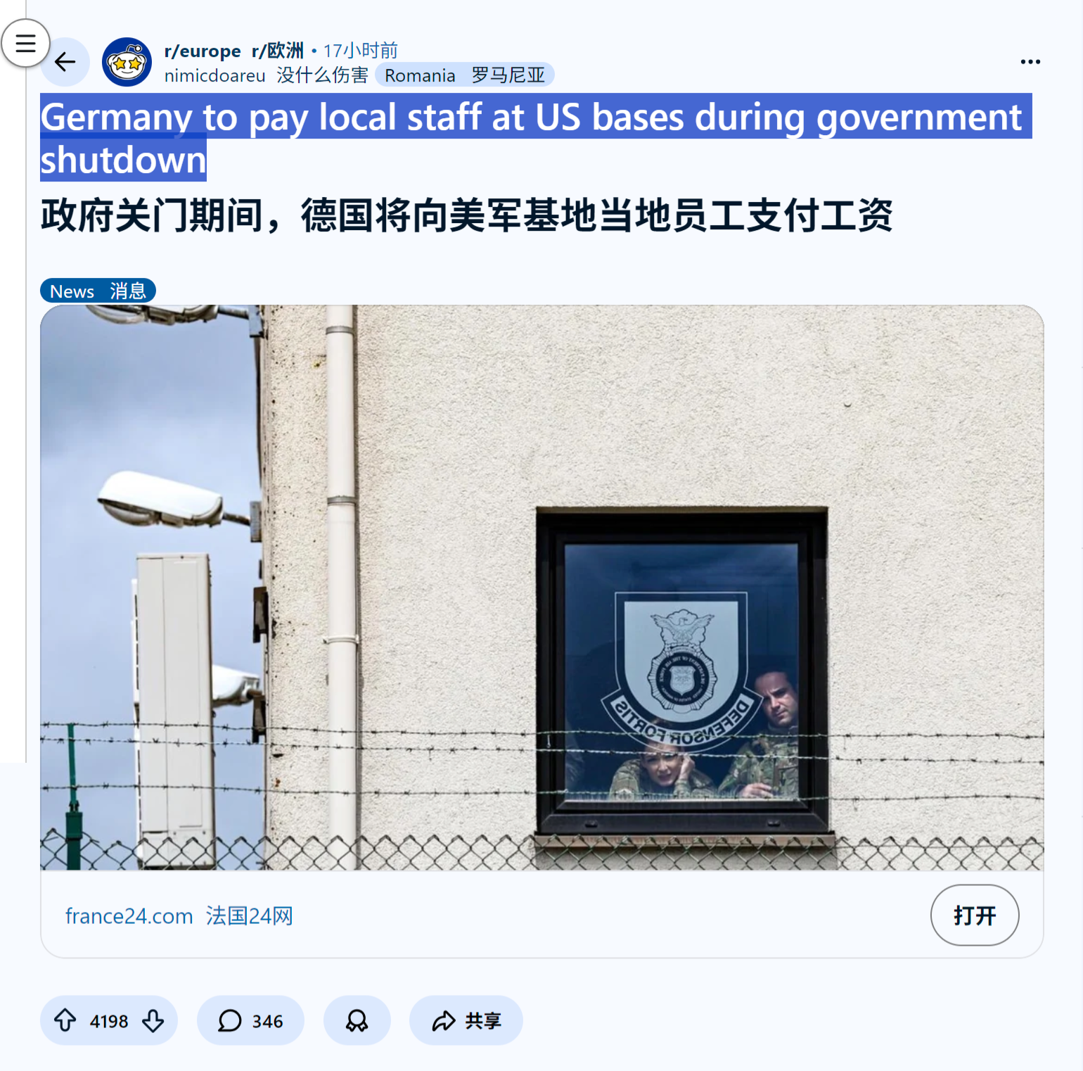 来源:https://www.reddit.com/r/europe/comments/1od61kk/germany_to_pay_local_staff_at_us_bases_during/