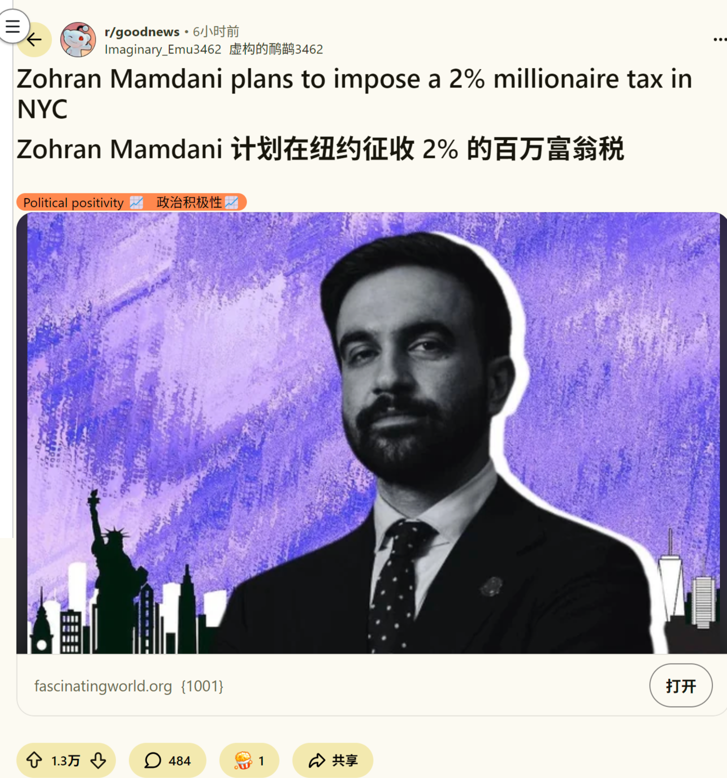 来源:https://www.reddit.com/r/goodnews/comments/1p4zlh5/zohran_mamdani_plans_to_impose_a_2_millionaire/