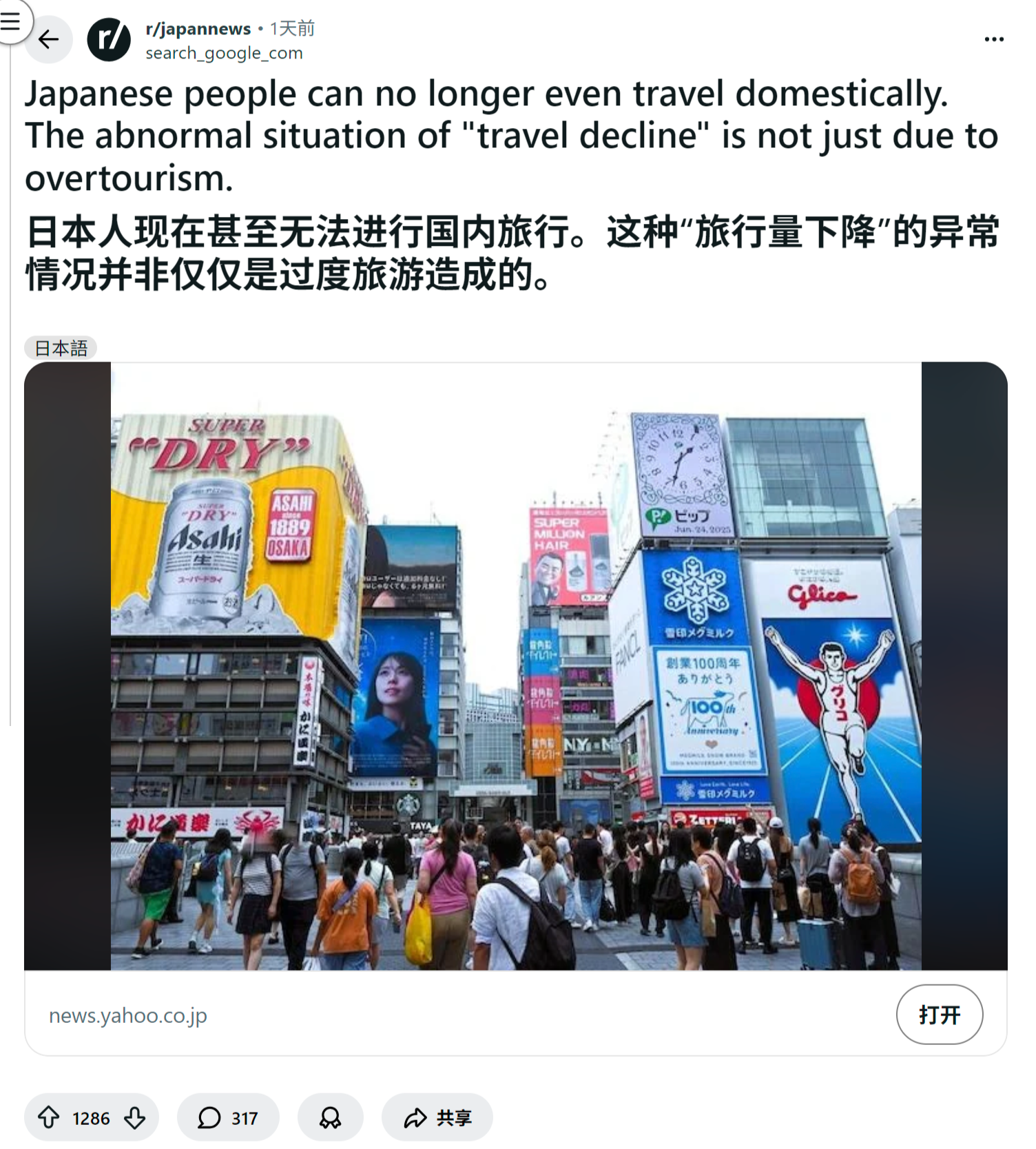 来源:https://www.reddit.com/r/japannews/comments/1pm4qzj/japanese_people_can_no_longer_even_travel/