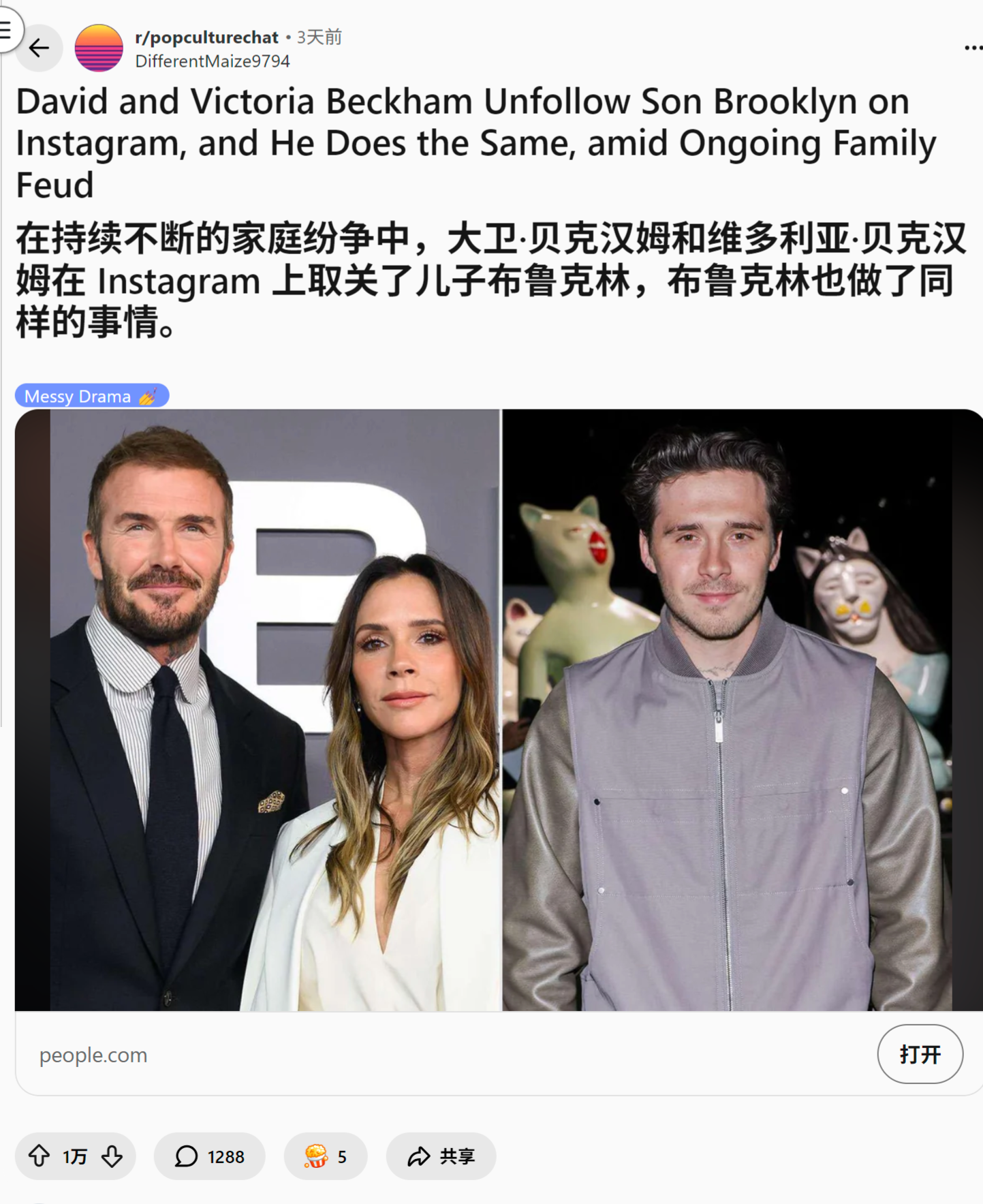 reddit爆火 外国人解释贝克汉姆和长子互相拉黑内幕