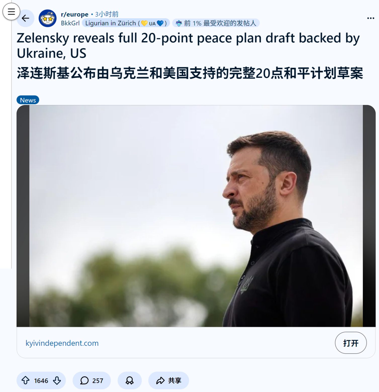 来源:https://www.reddit.com/r/europe/comments/1pukupy/zelensky_reveals_full_20point_peace_plan_draft/