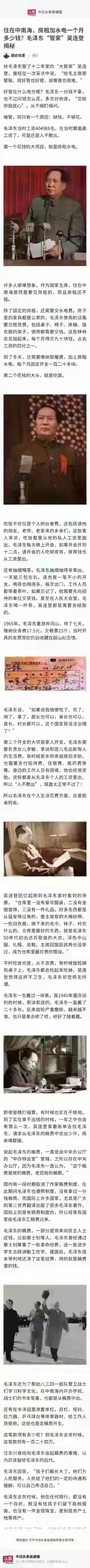 毛主席的工资怎么花?够用吗?