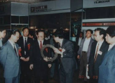 1995年4月30日,江同志在全国第二届工业企业技术成就展上观看正在建设中的上海外高桥发电厂(4×30万kw)模型 ,在参观新疆风电场横型时,他仔细询问了我国风力资源状况,提出要发展风电,造福边远地区人民。还查看了民航展台和中南工业大学(今 中南大学) 粉末冶金研究院研制的航空刹车材料。