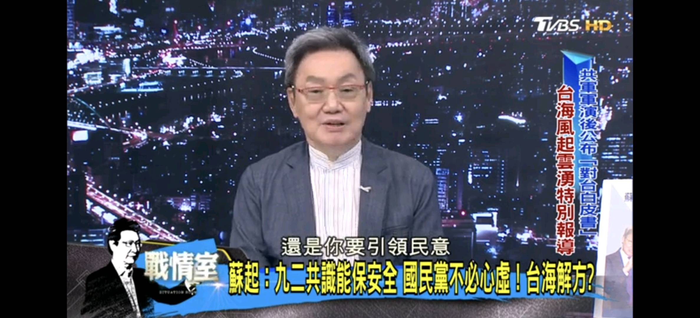 提出92共识苏起希望国民党提出新的和平统一的理论,这是历史的机遇。