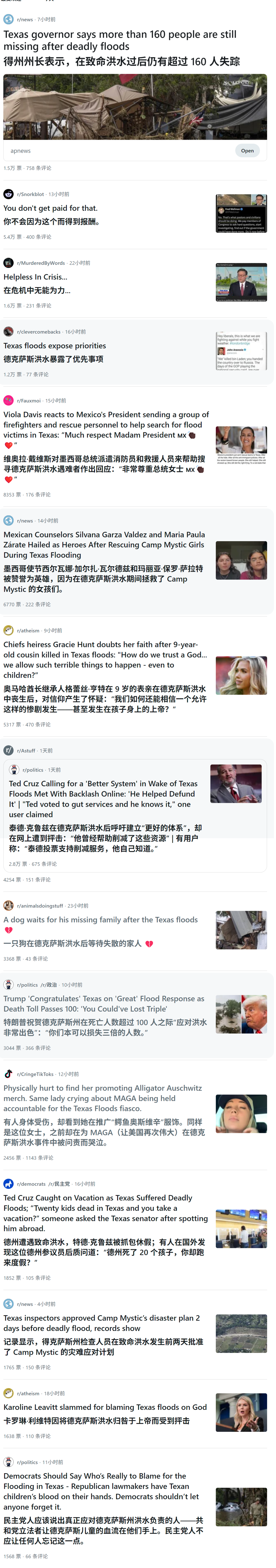 美国reddit关于德州洪水的讨论。