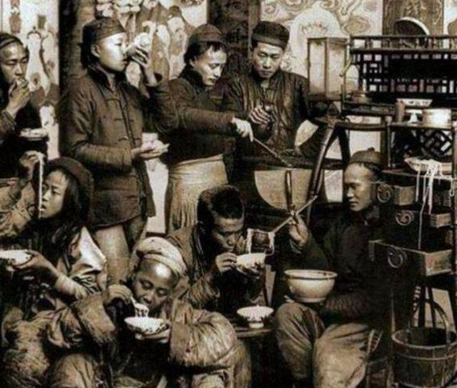 外国人拍摄的清朝老照片,有钱人吃饭和穷人吃饭