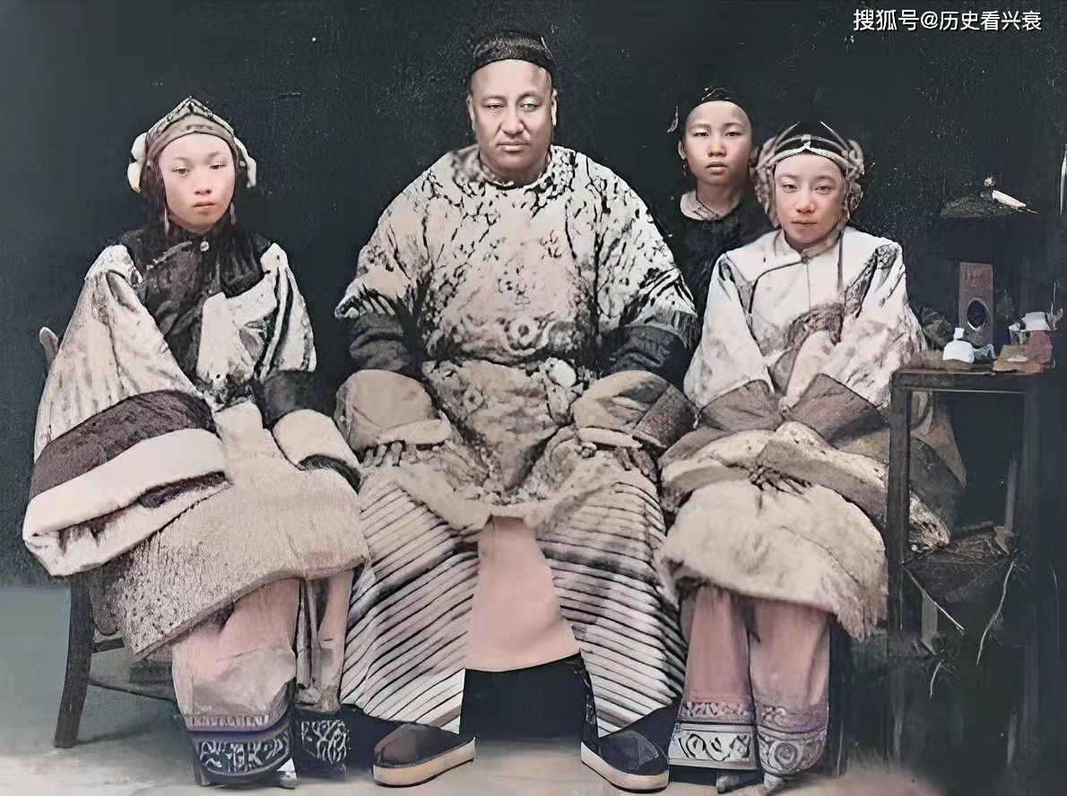 一个清朝官员和他家人的合影,看他女儿所穿的服饰不是旗袍,他应该不是满族官员。
