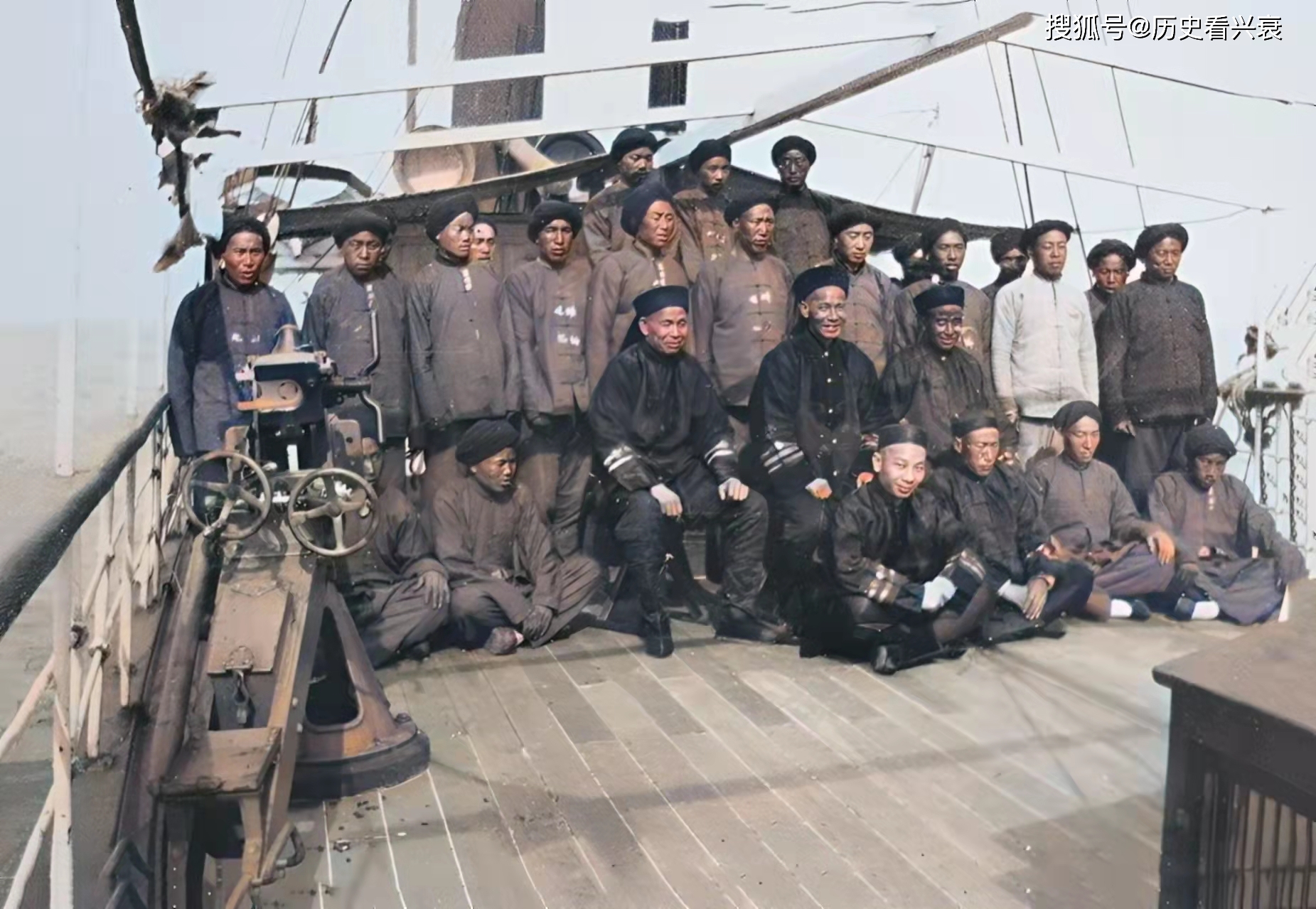 北洋水师官兵的合影,站在洋人旁边的军官是民族英雄邓世昌。