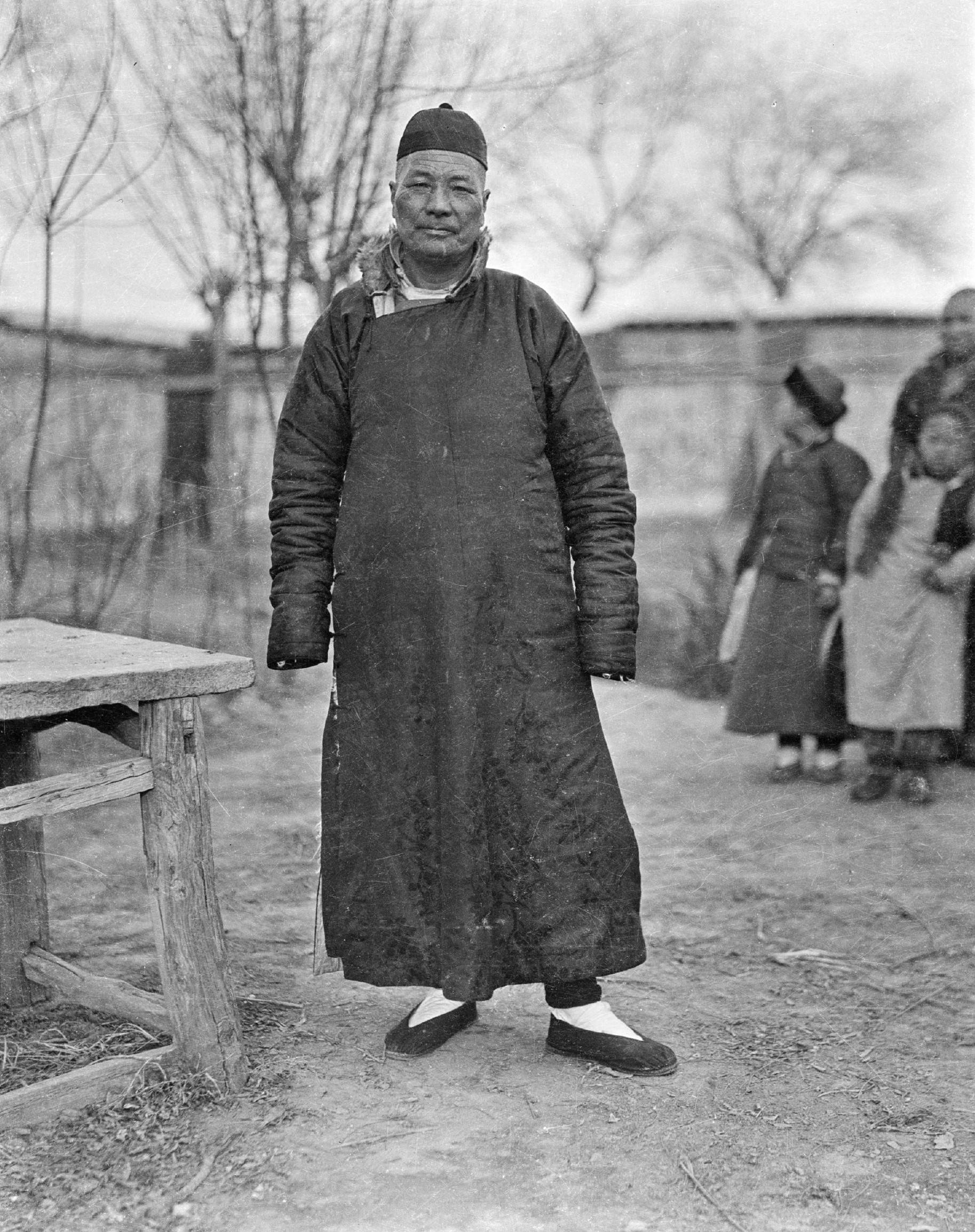 22、开封城内的一户院内,一位老汉穿着棉袍,头戴瓜皮帽,让甘博拍下了这张照片。