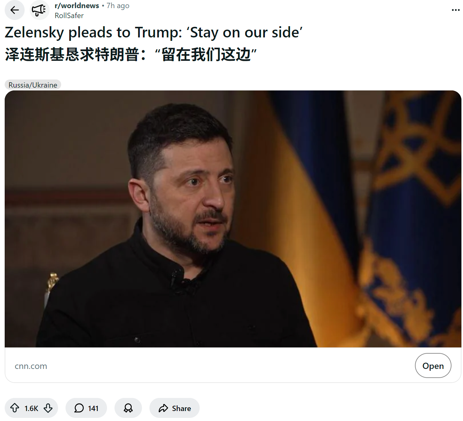 reddit热议 来外怎么看泽连斯基恳求特朗普:“留在我们这边”