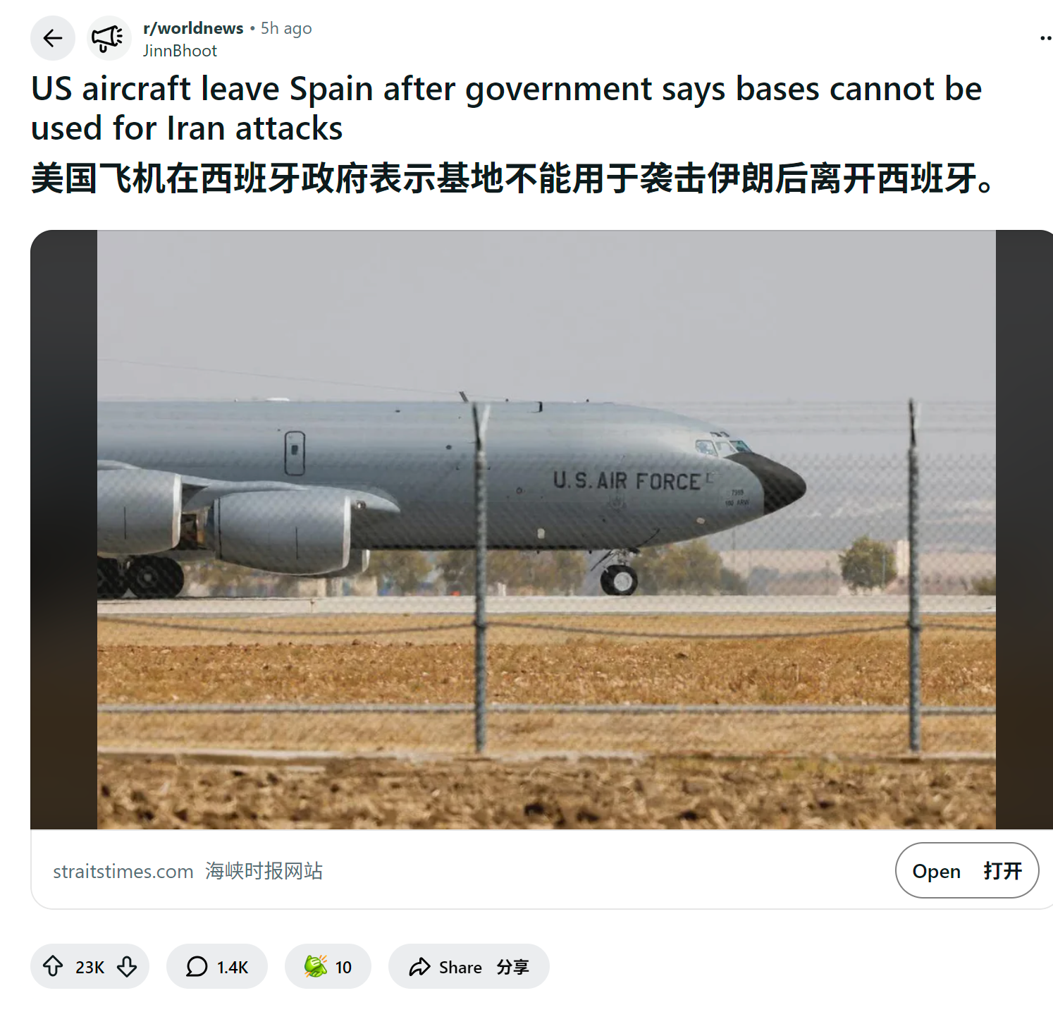 - reddit爆火 特朗普:对西班牙在伊朗问题上的立场不满,我们将取消与西班牙的所有贸易关系。