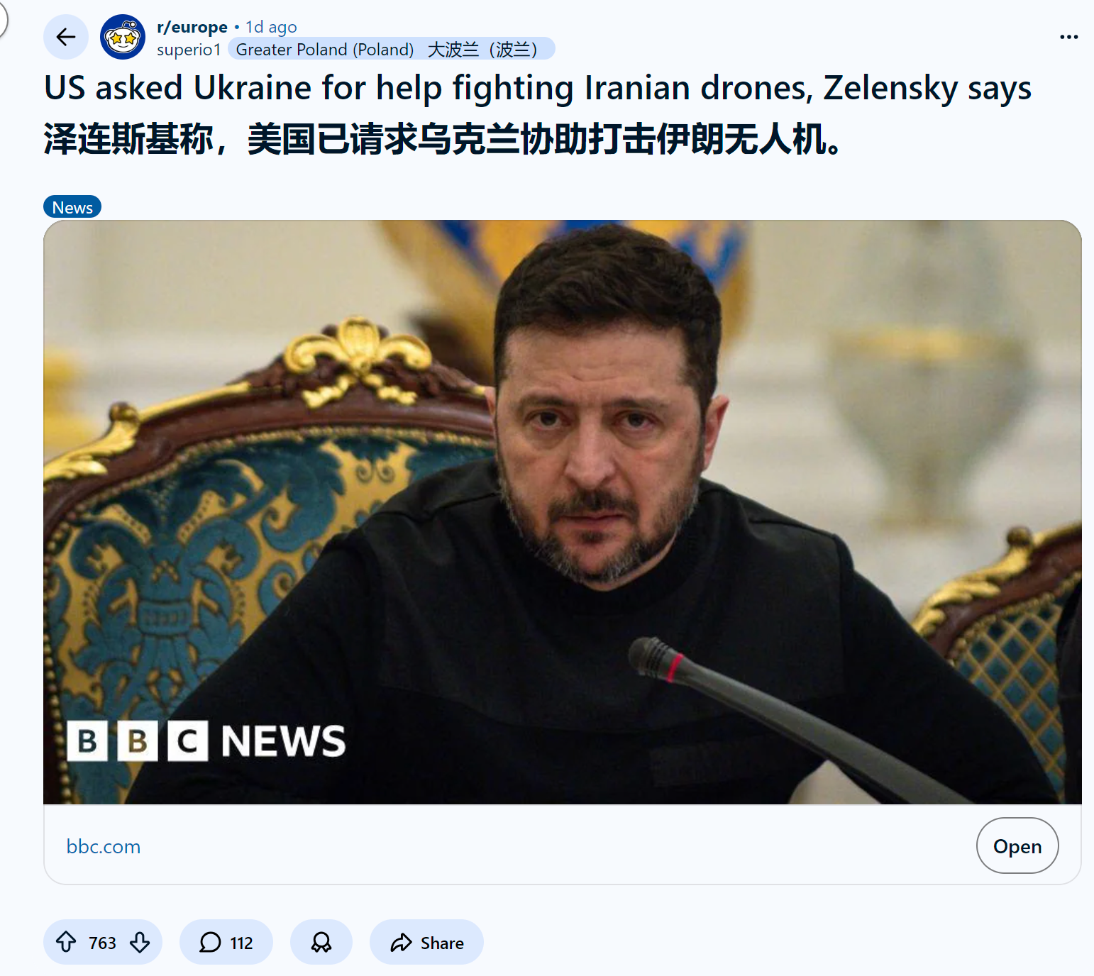 reddit热议 欧洲人怎么看泽连斯基称,美国已请求乌克兰协助打击伊朗无人机。