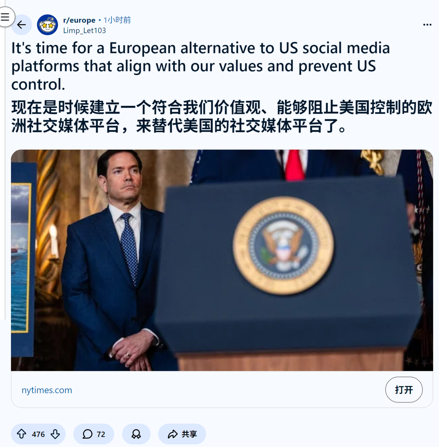 reddit热议 现在是时候建立一个符合我们价值观、能够阻止美国控制的欧洲社交媒体平台