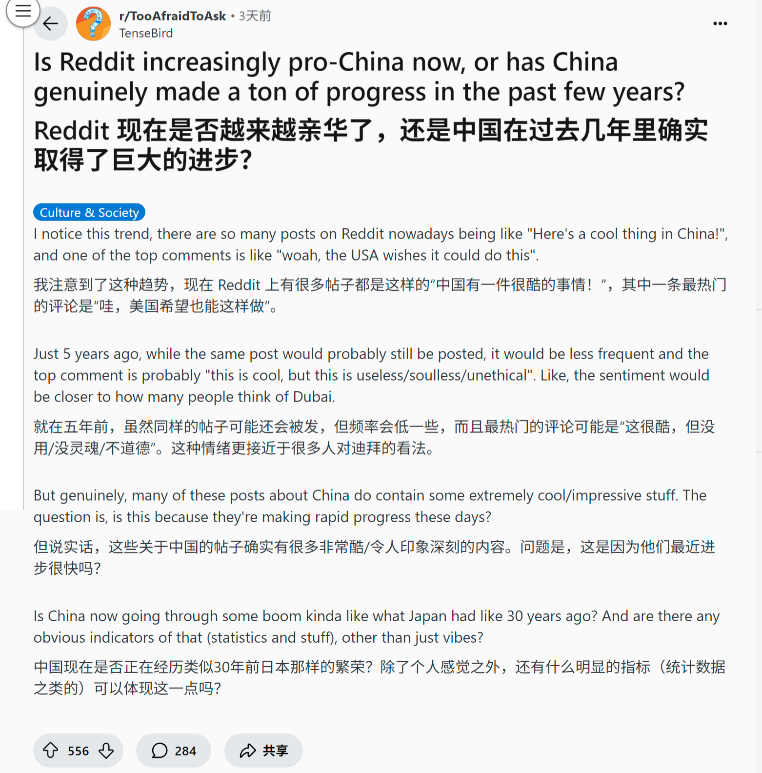 Reddit 现在是否越来越亲华了,还是中国在过去几年里确实取得了巨大的进步?