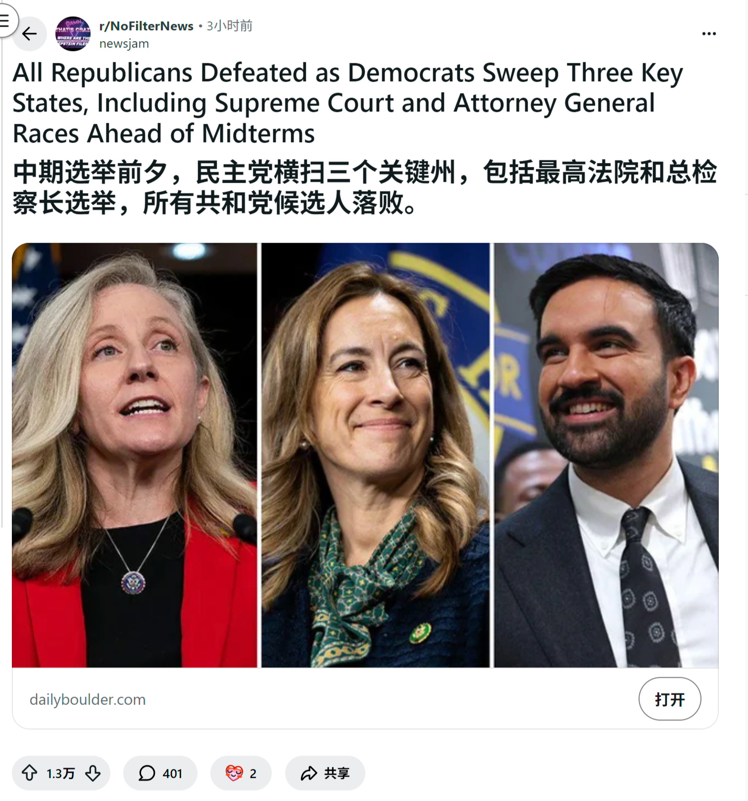 中期选举前夕,民主党横扫三个关键州,包括最高法院和总检察长选举,所有共和党候选人落败。