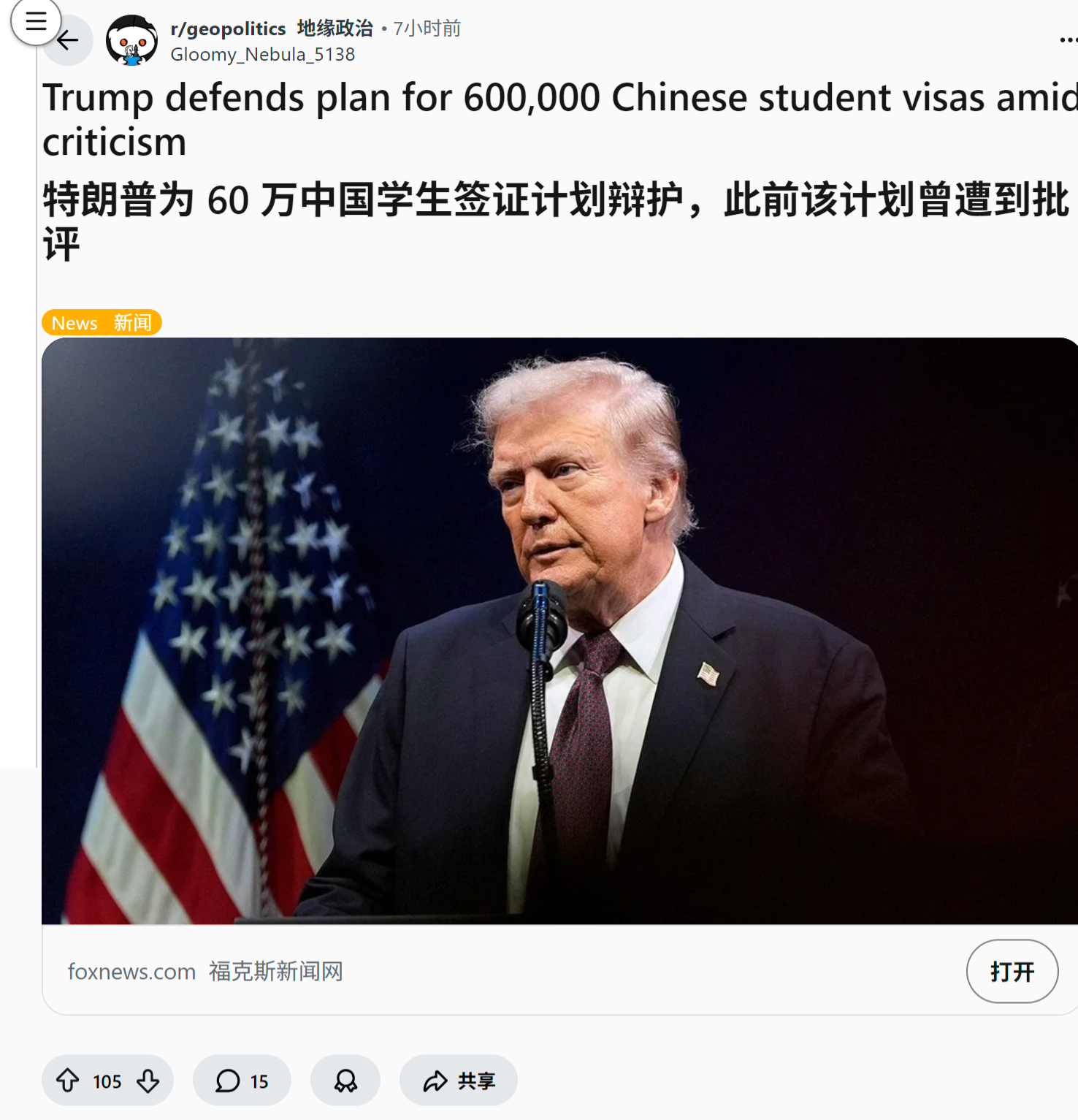 来源:https://www.reddit.com/r/geopolitics/comments/1oujgei/trump_defends_plan_for_600000_chinese_student/