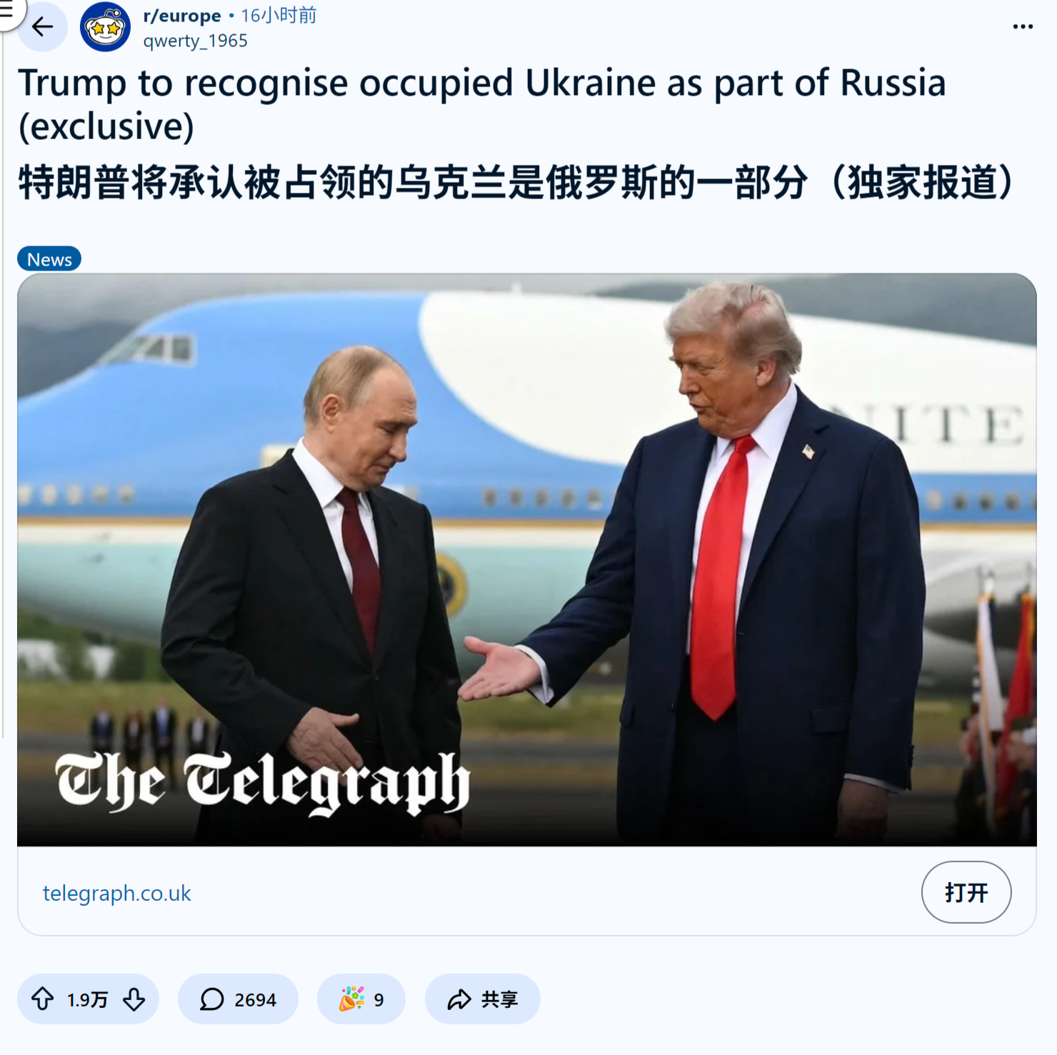 特朗普将承认被占领的乌克兰是俄罗斯的一部分(独家报道)